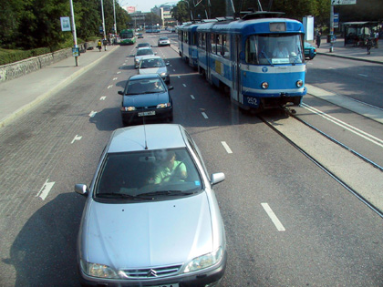Estonia 2002---D2-03 01 A good perspective shot of an electric bus in a Tallinn street