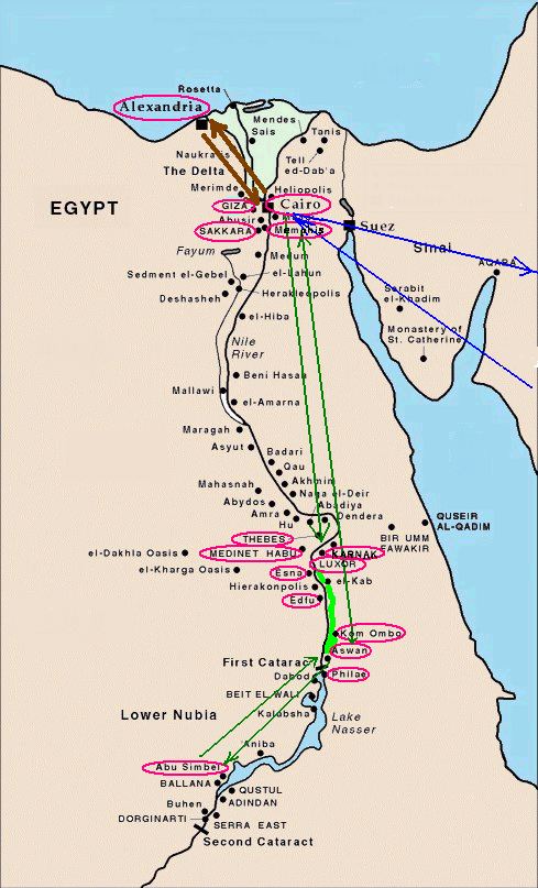 Egypt 2004---D00-01-01 Map showing our tour in Egypt