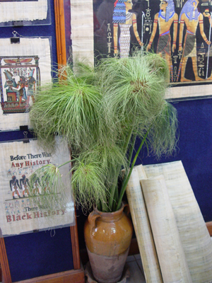 Egypt 2004---D10-02-01 Papyrus plants seen in a papyrus arwork store