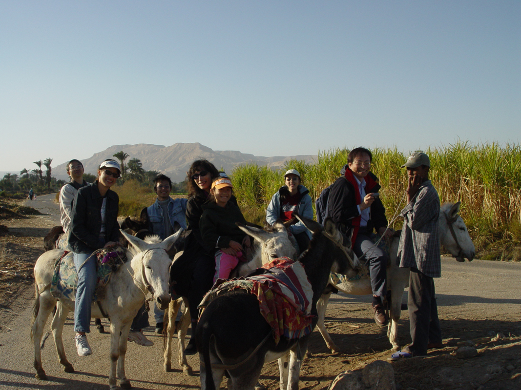 Egypt 2004---D05-03-05 Our group riding donkeys in west Luxor
